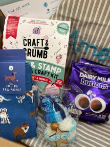 10 Smiles were sent to both ME sufferers and carers of all ages this month. All chosen and personalised to fit each person’s likes and interests. Some of the items sent this month included blankets, cushions, hot water bottle, wrist warmers, socks, books, water bottle, mugs, coasters, coffee, tea, chocolates, biscuits, apron, baking set, craft set, bird feeders, keyring and a vintage camera.