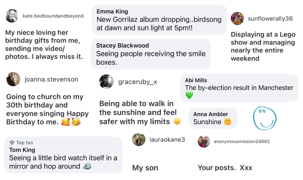 What’s made you smile this month? Each month we ask this question on social media and we love hearing the responses. We hope by sharing some of your smiles it can help others to find a smile too.